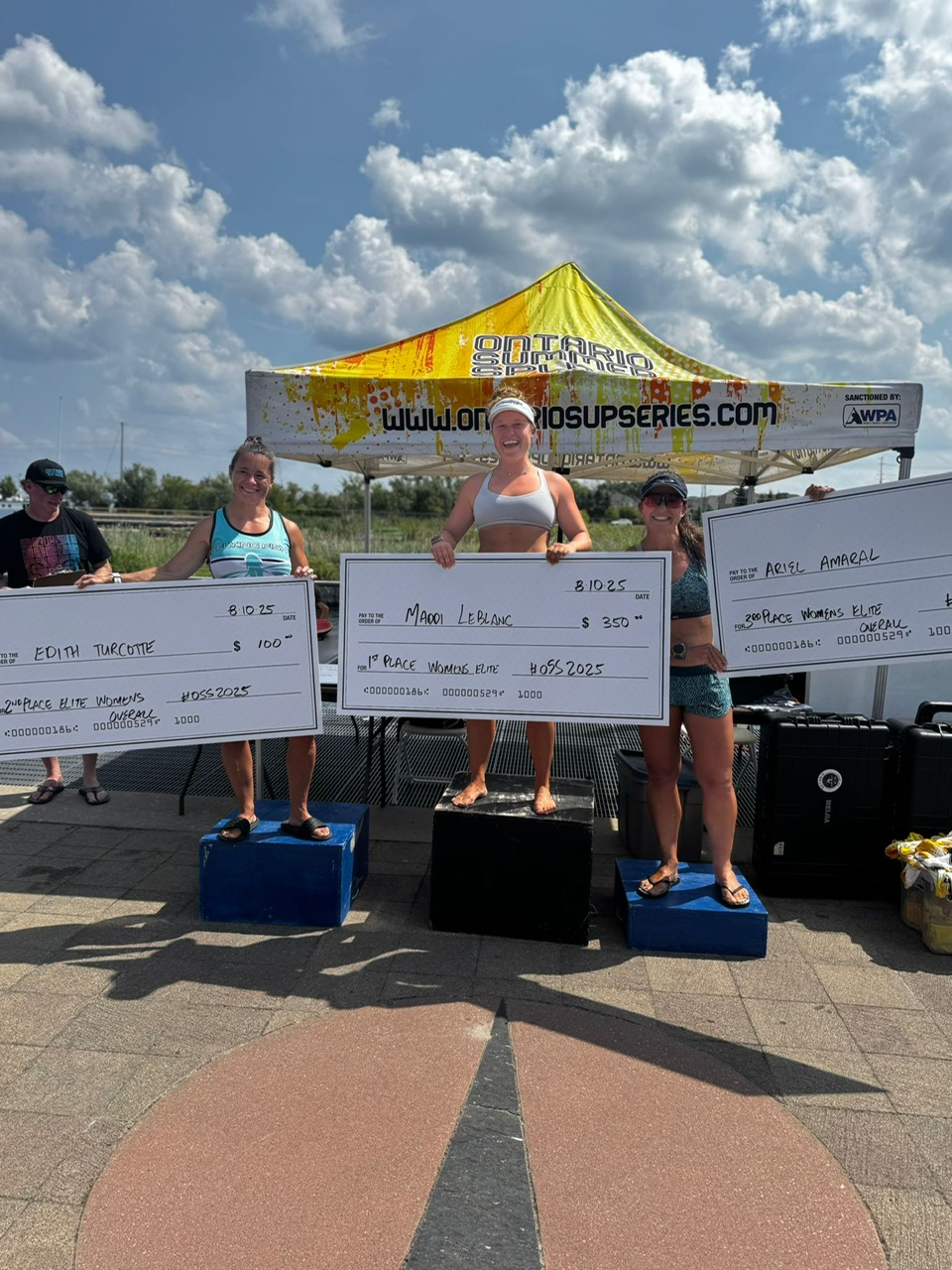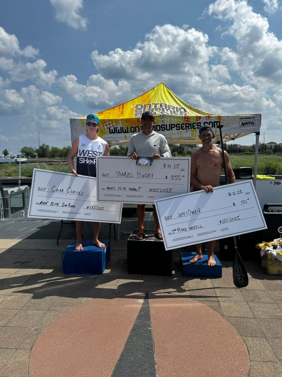 “As always, the 2025 edition of the Ontario SUP Series Sidelaunch in Collingwood, Ontario, did not disappoint. Saturday’s sprint and tech races were held under cloudless skies and searing heat. Being an ISA World Championships Qualifier race, an equally hot field turned out to do battle in Georgian Bay and the harbour. The event kicked off with the Technical Race, featuring a mix of in-harbour and open-water buoy courses. All race categories navigated a series of buoys inside the harbour, with Elite racers also completing three laps around a set of buoys outside the harbour—covering a total distance of approximately 6 km. Open competitors raced two laps within the harbour (approx. 5 km), while Novice racers completed a single in-harbour lap (approx. 2.5 km)