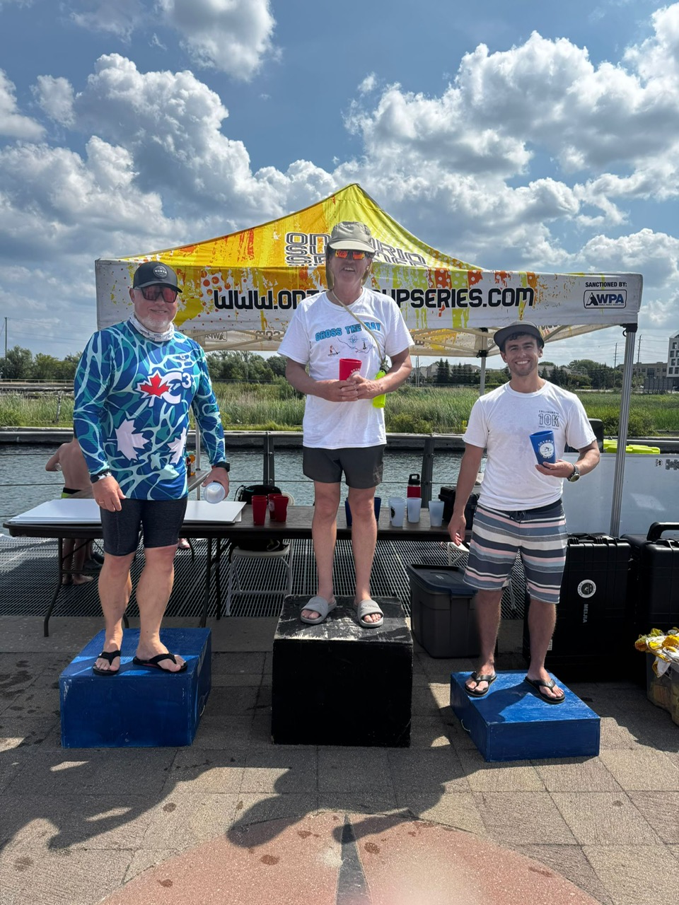 For Sunday’s distance race, the big winds and famously tumultuous waters of Georgian Bay that often spin up a crazy downwinder stayed away and gave way to a 12-km out-and-back from Collingwood Harbour to the northwest around the Nottawasaga Island lighthouse. A noticeable west wind stretched things out early, giving favorite Tamas Buday (QC) a chance to power away from 18-year-old phenom Cam Carney (ON), who squeaked across the line just ahead of Women’s champion Maddi Leblanc (ON). Rounding out the top 3 in the 18-49 Men was Jeffrey Cowan (ON). On the women’s side, 50+ winner and second overall female, Edith Turcotte put more points on the board for Quebec, followed closely by Ariel Amaral (ON) as runner-up in 18-49 and Megan Sheppard (ON) taking 3rd. 50+ 2nd- and 3rd-place honors went to Wendy Tillett (QC) and Kristy MacMillan (ON), respectively. In the Men’s 50+, Martin Rydlo (ON) outpaced a tight draft duo comprising Bruno Turcotte (QC) and Tommy Lam (ON) for a clear win. A small prone field was led by Gander Tawastsjerna (ON) and Jojo Davidson (ON) on the women’s side. Sunday’s Open category SUP races were held inside the harbour breakwalls, but with no less challenging conditions via the multiple loops for the 9km parcours, with Michael Rutloff (ON), Artem Lavrynenko (ON) and James Pereira (ON) taking the top 3 steps of the podium.“