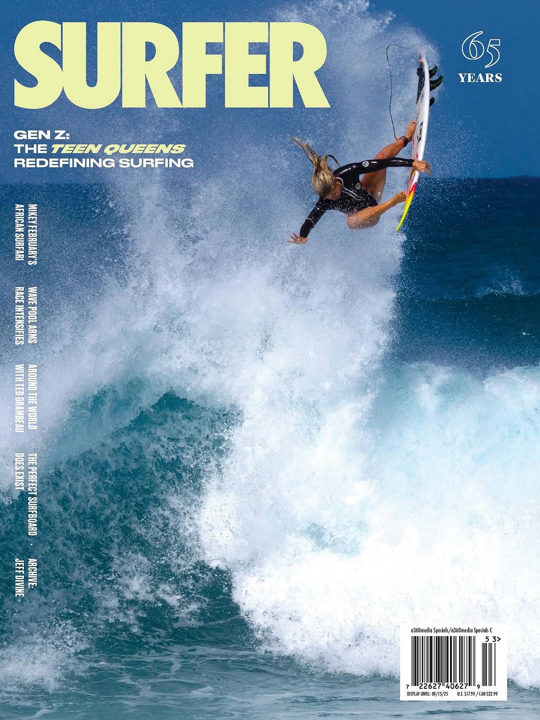 The cover features Brooks at Rocky Point – as shot by Brian Bielmann – punting a massive, fully tweaked frontside air. It represents the leaps and bounds in progression that a fiery group of young females are making in the surf world, more of which is documented inside the pages of the mag.